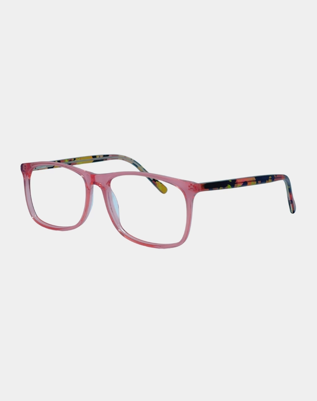 Esta armação de grau é fabricada em acetato com agulha metálica interna nas hastes para reforçar mais a peça. Com design quadrado tem uma combinação de cores bem atemporais e vivas, disponível no rosa translúcido com hastes na estampa animal print.