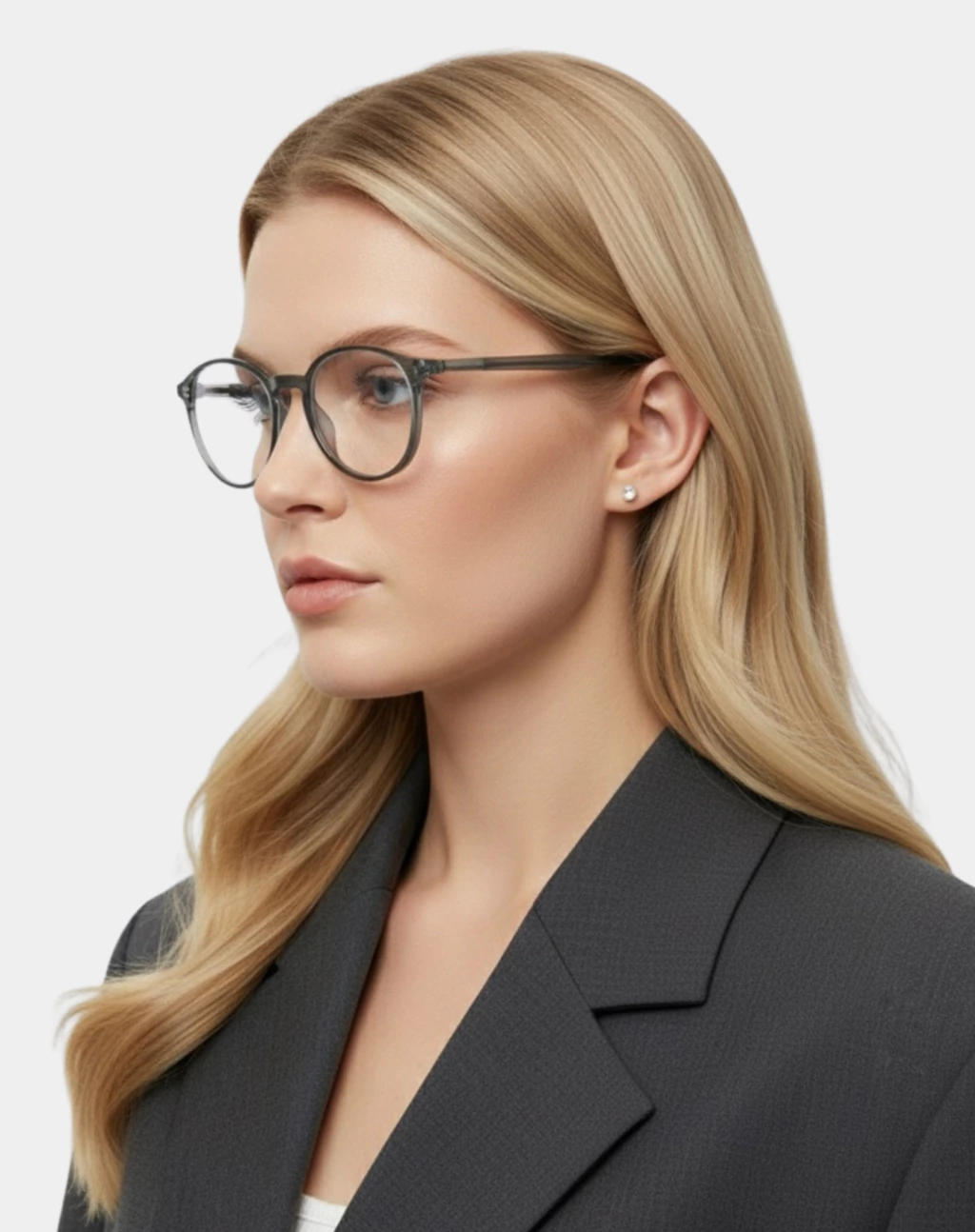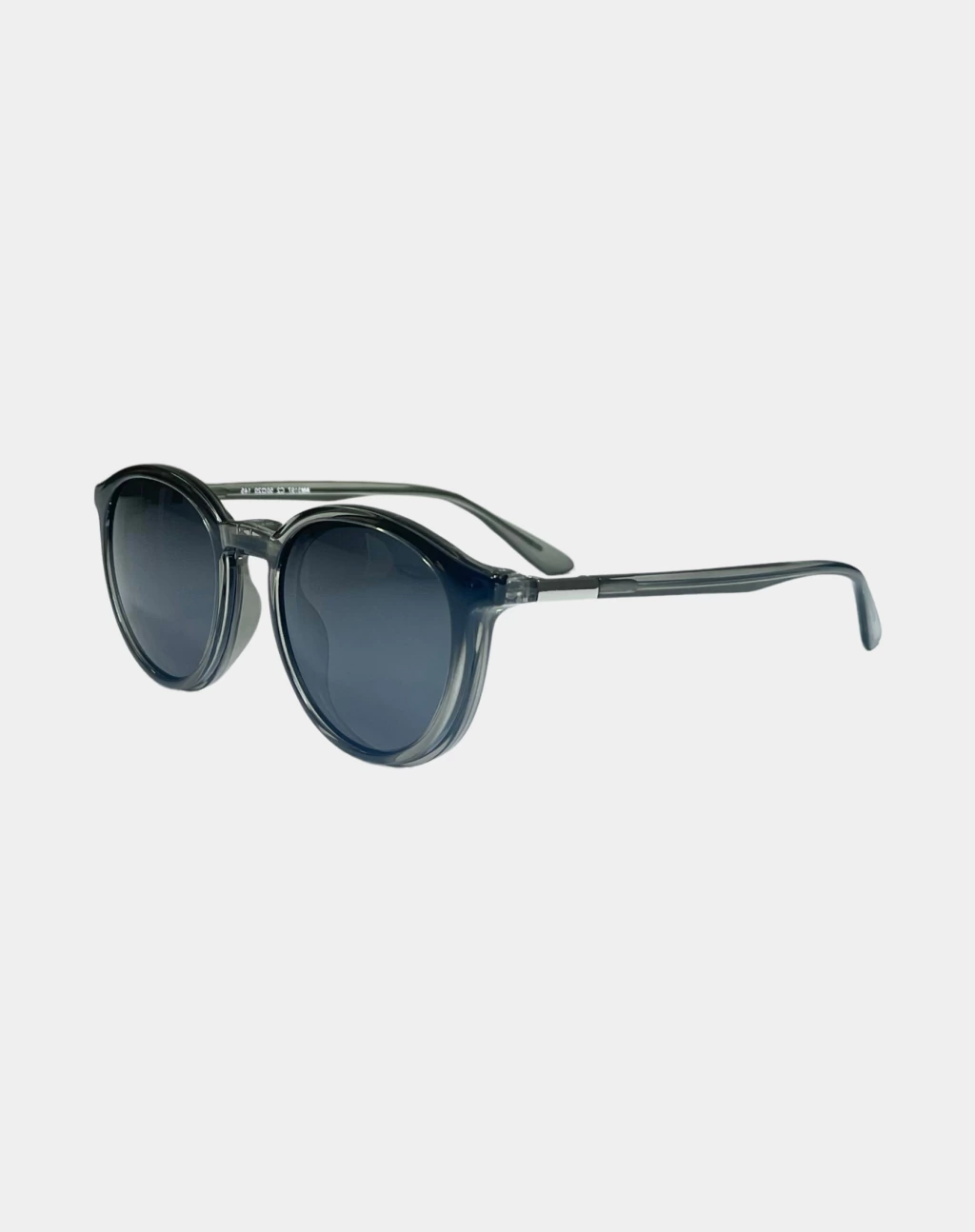 Design moderno e casual para o seu dia a dia! Produzido em TR90 com design redondo, com adicional clip-on solar com lentes em policarbonato polarizada com proteção UV400, de encaixe magnético para proteção contra os raios solares. Disponível na cor cinza translúcido.