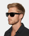 Este óculos de sol com design quadrado robusto, é fabricado em TR90, com as lentes em policarbonato são polarizadas e oferecem proteção UV400, protegendo seus olhos com máxima eficiência contra os raios solares UVA e UVB. Disponível na cor preto fosco, combina a elegância sóbria com a ousadia discreta.