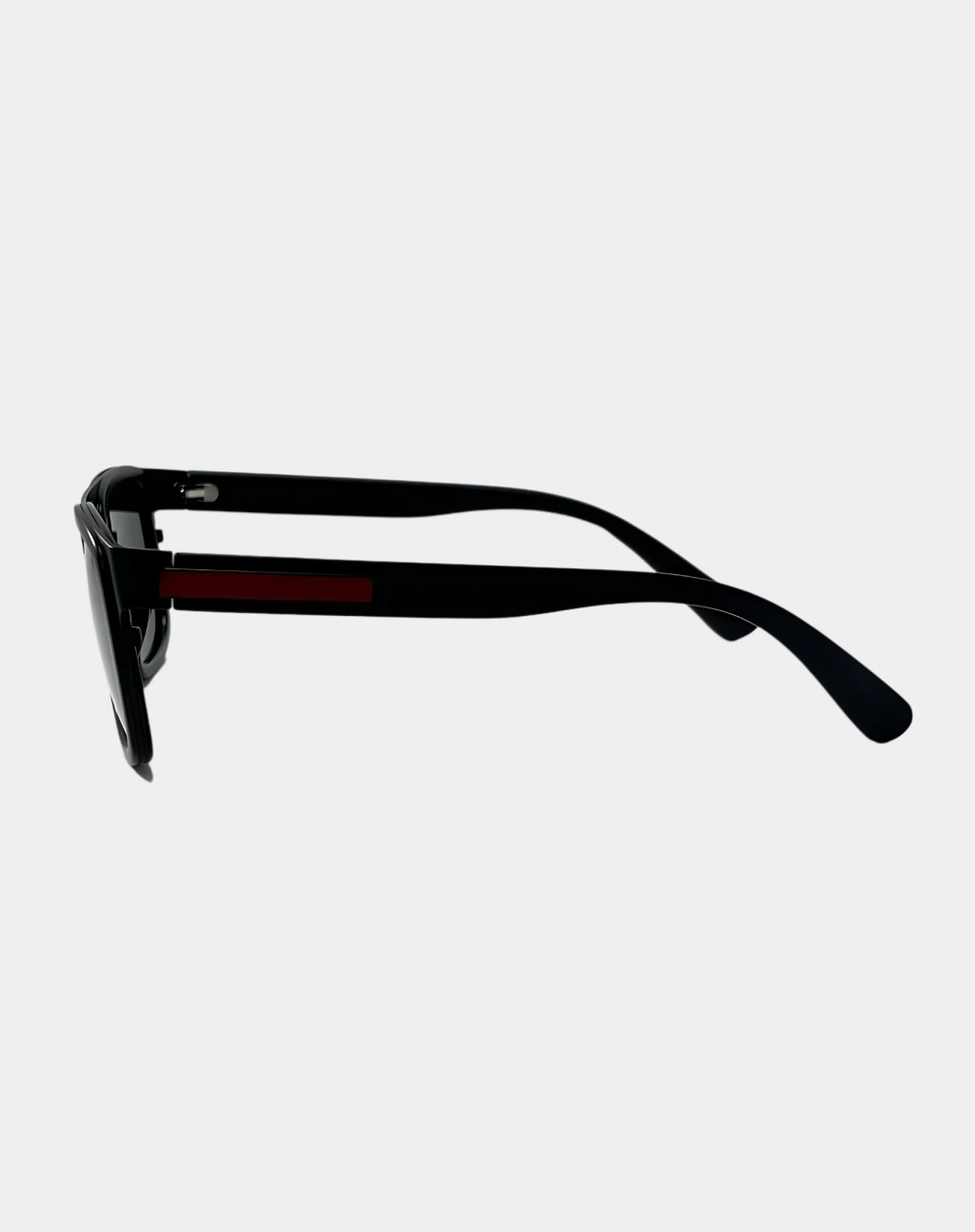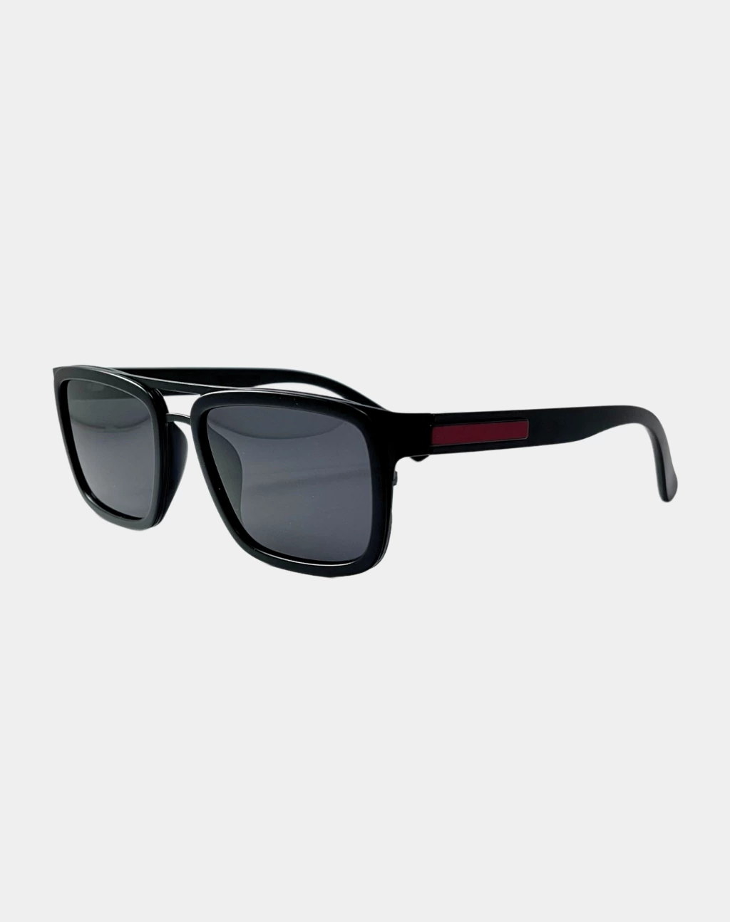 Este óculos de sol com design quadrado, é produzido em TR90. A combinação de preto com detalhe vermelho nas hastes adiciona um toque esportivo e urbano. Suas lentes em policarbonato são polarizadas com proteção UV400, oferecendo segurança contra os raios solares nocivos UVA e UVB, reduzindo reflexos indesejados, o que proporciona uma visão mais nítida e confortável em qualquer ambiente.
