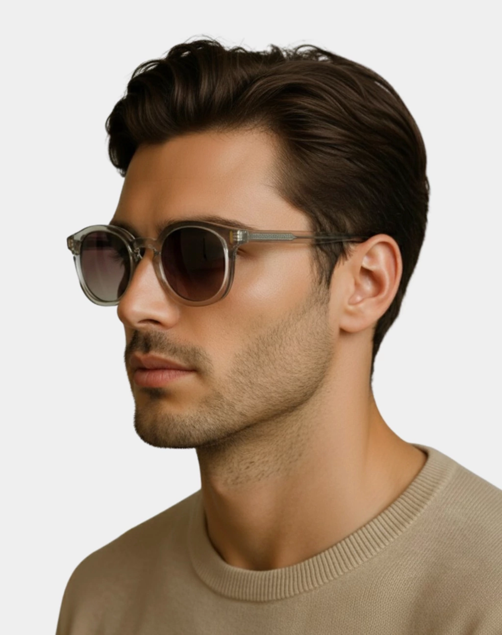 Este óculos de sol, fabricado em acetato com agulha metálica embutida nas hastes, revelando um delicado detalhe brilhoso que capta a luz com sutileza e sofisticação. Disponível em três cores, preto com frontal em degradê animal print, bege translúcido, e cinza escuro translúcido. As lentes em policarbonato com proteção UV400 são polarizadas, oferecendo conforto visual e proteção total contra os raios solares UVA e UVB, além de deixar a visão mais nítida.