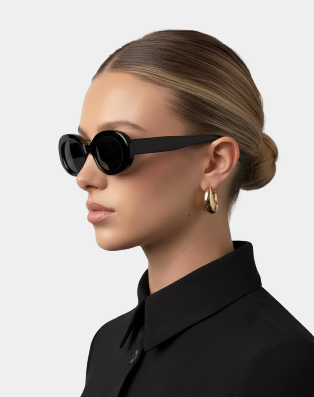 Este óculos de sol com design redondo e a sofisticação da armação preta em acetato. As lentes em policarbonato polarizadas com proteção UV400 garantem excelente desempenho, bloqueando os raios solares UVA e UVB e proporcionando uma visão mais clara e sem reflexos.
